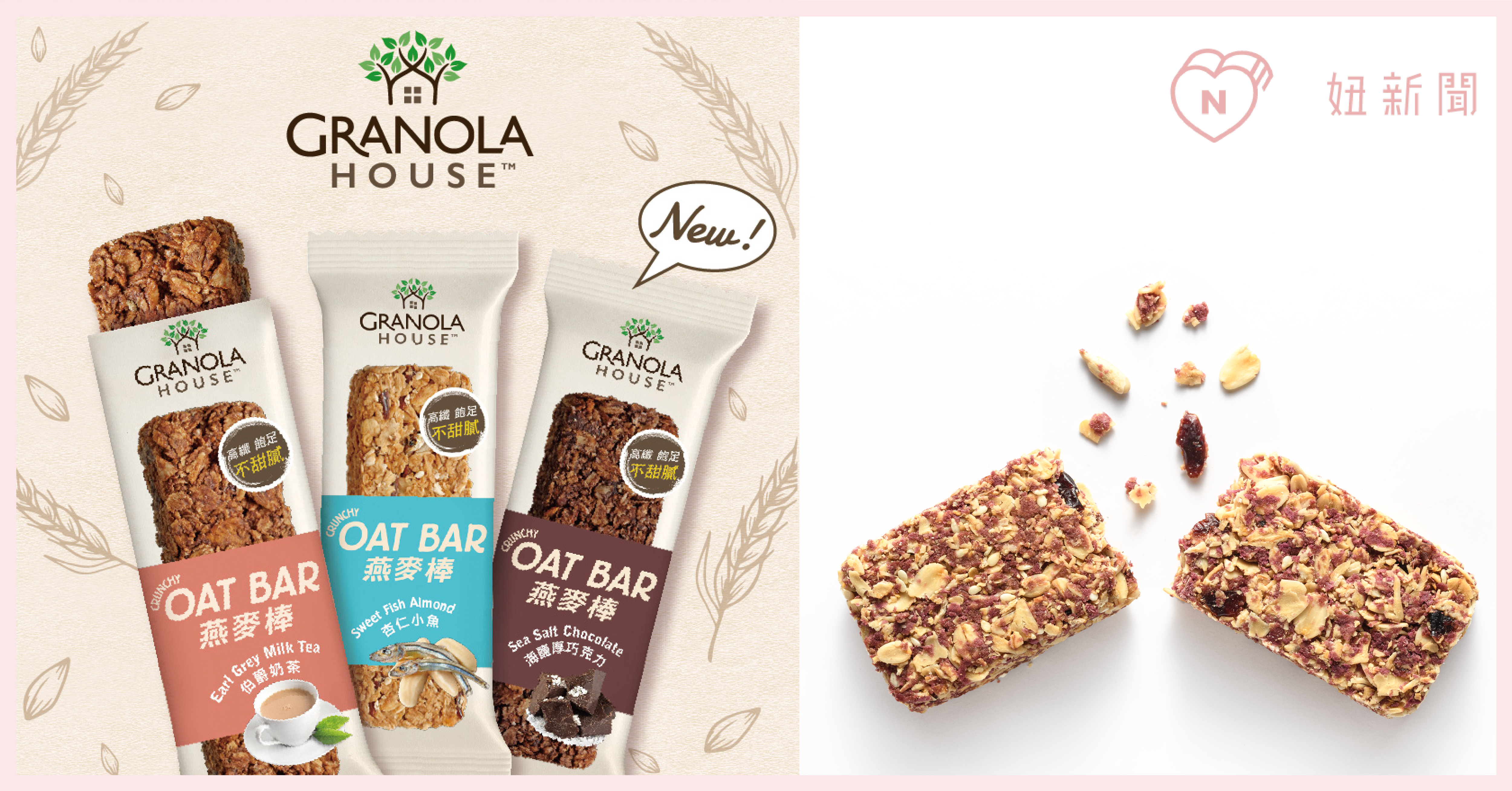 Granola House小麥的家擅長以食物原本的樣子傳遞生命的美好,佈植社會多元能量的種子,防疫期間人人有責,就個人而言,首要維持自身健康,慶幸國人越來越具備養生觀念,燕麥零食化已蔚為風潮,Granola House小麥的家纖脆燕麥棒悄悄熱銷全台,創新口味引人嚐鮮,諸如以燕麥、玉米片、葵瓜子為基底特製的「伯爵奶茶」口味,可以嚐出柑橘味茶香與滑順奶香;坊間燕麥棒中僅見的「杏仁小魚」口味,以燕麥、玉米片、葵瓜子為基底,再添加杏仁片、白芝麻與小魚乾,鹹甜滋味與酥脆燕麥棒意外合拍;「海鹽厚巧克力」口味則是融合海鹽與法國巧克力的別緻享受;此外,還有紫薯雪花片、蔓越莓乾加成的蔓越莓紫薯,以及杏仁和芝麻籽攪和烘製而成的杏仁芝麻口味,完整保留穀物的營養且甜而不膩,是愛嚐鮮的你,輕鬆解饞的新選擇!