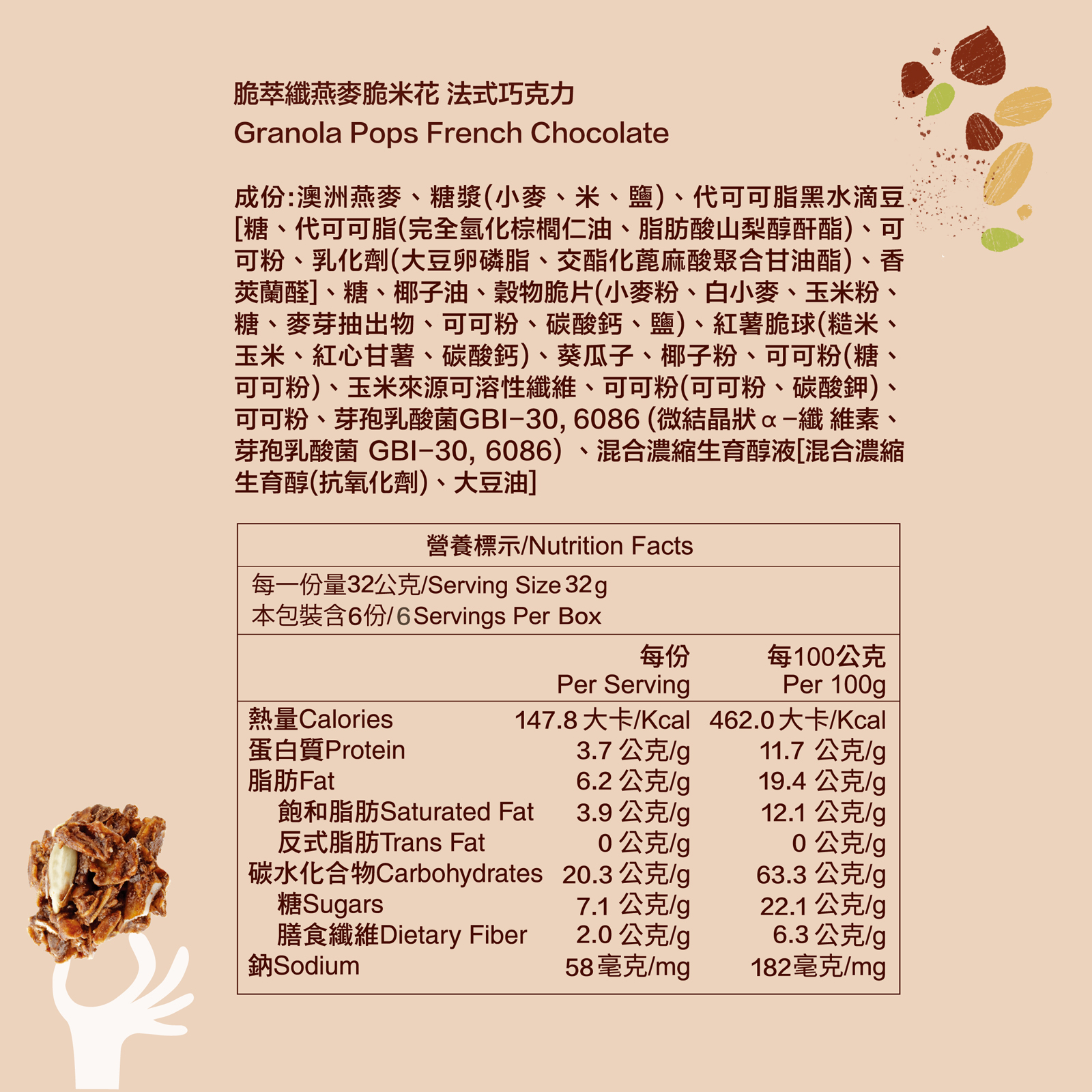*產品可能含堅果或烘烤果乾,口感上偏硬,如有牙口不適者請留意*